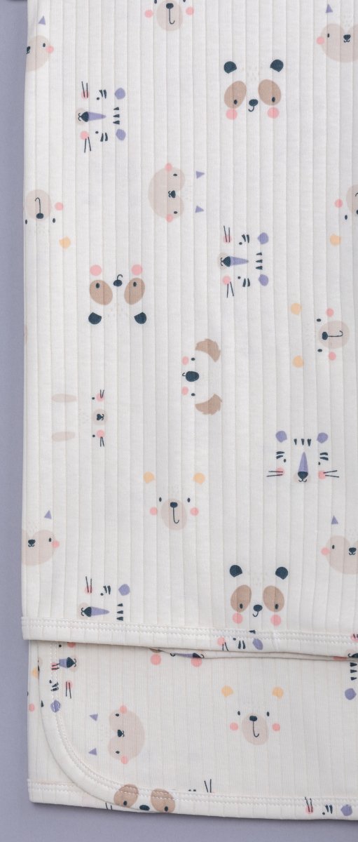 Двупластова бебешка пелена, изработена от 100% висококачествен памук (интерлог), който е мек и нежен на допир, идеален за деликатната бебешка кожа. Може да избирате между различни цветове и дизайни.  Изработени с голяма прецизност и внимание, дрешките са подходящи за всички сезони, осигурявайки комфорт и удобство на вашето бебе през цялата година.