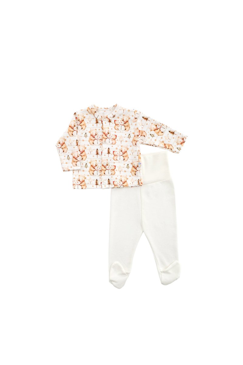 Бебешки комплект от 2 части - изработен от 100% висококачествен памук(интерлог), който е мек и нежен на допир, идеален за деликатната бебешка кожа. Може да избирате между различни цветове и дизайни. Изработени с голяма прецизност и внимание, дрешките са подходящи за всички сезони, осигурявайки комфорт и удобство на вашето бебе през цялата година.