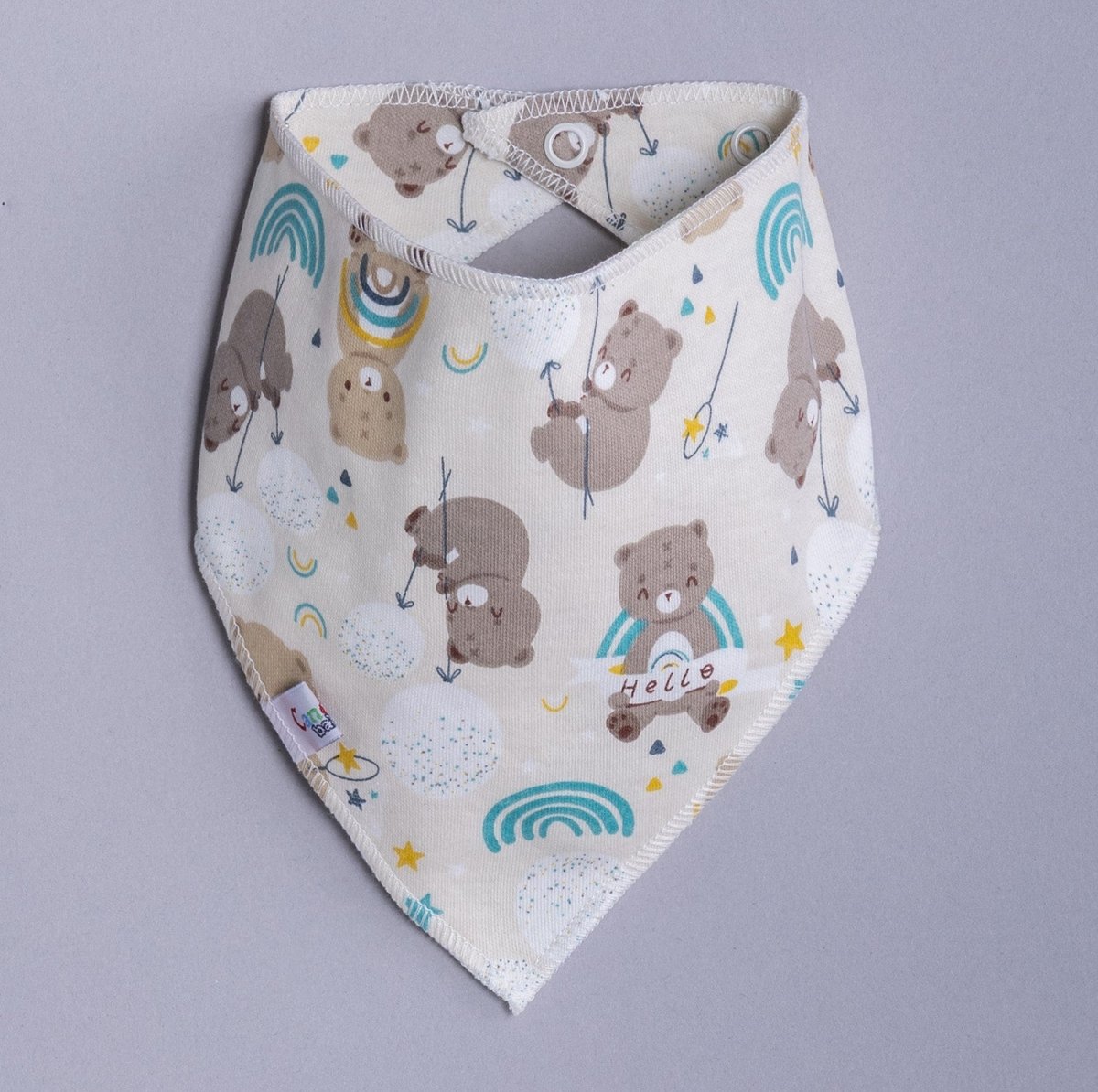 Бебешки лигавник, изработен от 100% висококачествен памук, който е мек и нежен на допир, идеален за деликатната бебешка кожа. Може да избирате между различни цветове и дизайни. Изработени с голяма прецизност и внимание, лигавниците са винаги подходящи по време на хранене, осигурявайки защита от нацапване и евентуално по-малко за пране.