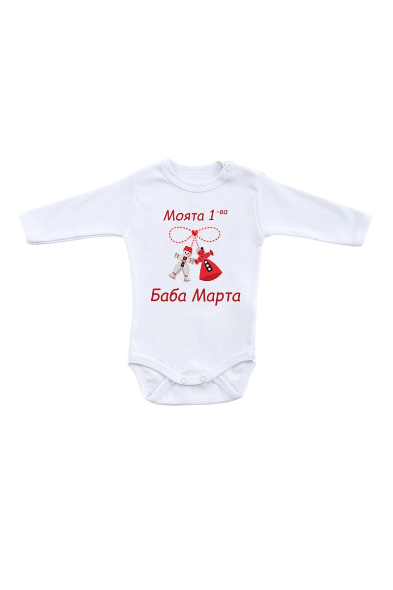 Бебешко боди с раменно закопчаване - „Моята 1-ва Баба Марта", бял