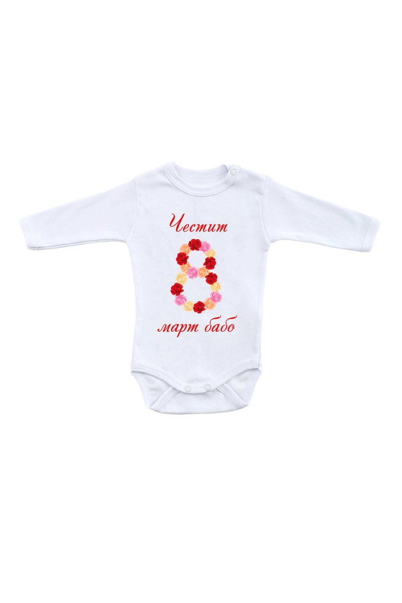 Бебешко боди с раменно закопчаване - „Честит 8-ми март, бабо", бял